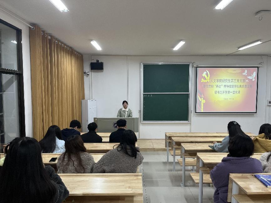 3月29日,人文學(xué)院研究生第三黨支部在昭潭書院校區(qū)2教101教室開展“書記講黨課”及主題黨日活動(dòng)。