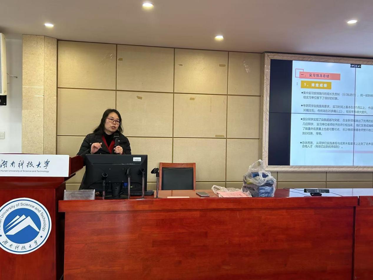 會上,劉艷鳳首先對21級學生的實習情況進行了全面總結。她高度贊揚了同學們在實習中的優(yōu)秀表現,“部分同學實現了自我超越與突破,如長沙晚報、星辰在線的丁子鳴、王志鵬同學,實習單位老師給予了很高評價。”同時她也坦誠地指出了同學們在實習過程中存在的一些不足,指出少數學生“寫作與溝通等基本功能不強”“一些細節(jié)沒有注意”“創(chuàng)新性與深度高質量產品少”等。劉艷鳳表示,總體來看,本屆學生的實習情況值得肯定,他們通過實習在專業(yè)技能與綜合素質甚至在一些全新領域里得到了很好地鍛煉,為就業(yè)打下堅實的基礎。