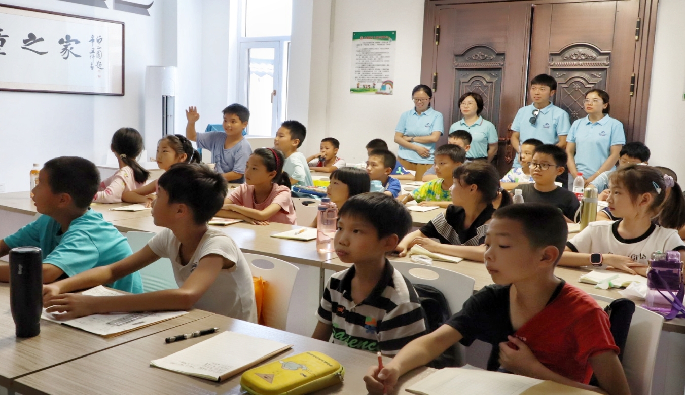 各個教室中,讀書聲整齊劃一,課堂氛圍十分活躍,三下鄉(xiāng)志愿團推普課堂正如火如荼地進行。譚艷看到孩子們的積極活躍,發(fā)出贊嘆,“這些課堂都很不錯呀,孩子們熱情都很高,志愿者們很棒!”三個“很”顯示了領(lǐng)導的肯定,給志愿者們帶來了極大的鼓舞。志愿者黃欣怡表示,能夠幫助和關(guān)愛當?shù)亓羰貎和麄兏械绞謽s幸,經(jīng)過四天的相處,和孩子們的相處愈發(fā)愉快輕松,也希望在接下來的日子里持續(xù)助力孩子們的健康成長,貫徹“語潤攸縣,鄉(xiāng)村振興”的理念。