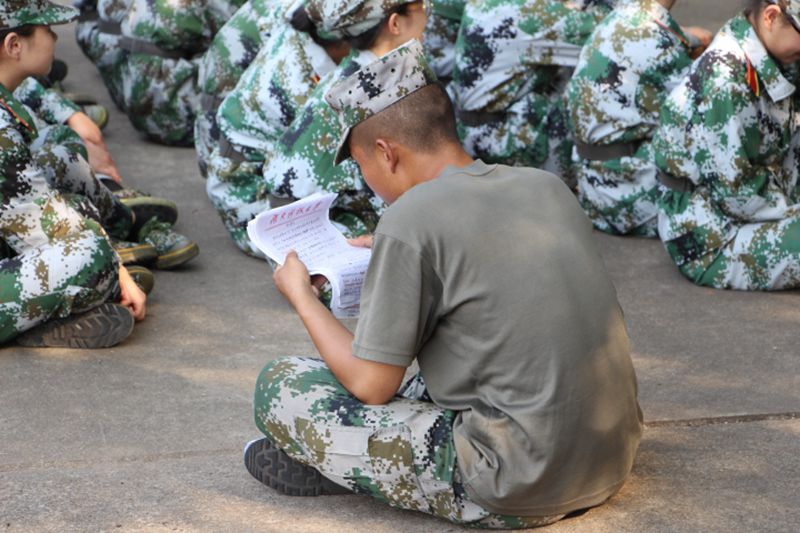 在四營一連三排的陣列旁,尹教臉上洋溢著溫暖而幸福的笑容,正拿著一沓軍訓感言認真閱讀。“新生們每天晚上搞內(nèi)務到很晚,還要堅持寫感言,還寫得這么用心,我覺得他們真的很棒。”尹教一邊說,一邊向助班們展示一些有趣的軍訓感言,有的寫了很多頁,有的畫著形象生動的圖畫,無論是何種形式,都在新生對軍訓的獨特體悟。對于這些感言和近幾天的訓練,尹教表示很滿意,他的體諒與贊許也帶給新生們感激與動力。三排的才藝展示吸引了鄰排的目光,在掌聲中,尹教感慨“美好的事物總是很快消逝,展示到此結束!”使得同學們哄笑一堂,意猶未盡。