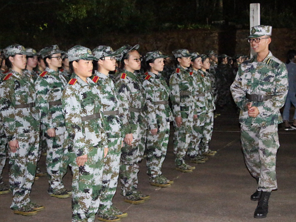 在助班的帶領(lǐng)下,新生們早早地來到訓(xùn)練場地整理好隊伍,等待教官的到來。晚上7時,各排教官準時來到訓(xùn)練場地。集中完畢后,連長王陽首先作了自我介紹:“我姓王,單名陽,你們看到太陽的時候就是訓(xùn)練的時候。”他指出近期新生中存在的自由散漫等問題并提出五點要求:時刻注意軍容軍紀,請假時嚴格遵循程序,弘揚集體主義精神,能夠吃苦耐勞,注重禮貌禮節(jié)。“當你們穿上軍裝,你們就不再是學(xué)生,而且中華人民共和國的一名預(yù)備軍人,要用軍隊的要求來嚴格要求自己!”,王陽簡述了自身在部隊中學(xué)習(xí)到的精神,并以此激勵新生不畏艱難,“軍隊的精神就是,沒有困難克服不了,沒有敵人戰(zhàn)勝不了,沒有任務(wù)完成不了!”在簡單提問以確保新生熟記紀律后,王陽再次強調(diào)了請假問題,并補充說明軍訓(xùn)不是為了折騰學(xué)生,而是為了考驗受訓(xùn)者的毅力和耐心,錘煉出軍人般的意志,最終將軍訓(xùn)中學(xué)習(xí)到的品質(zhì)落實到生活中。