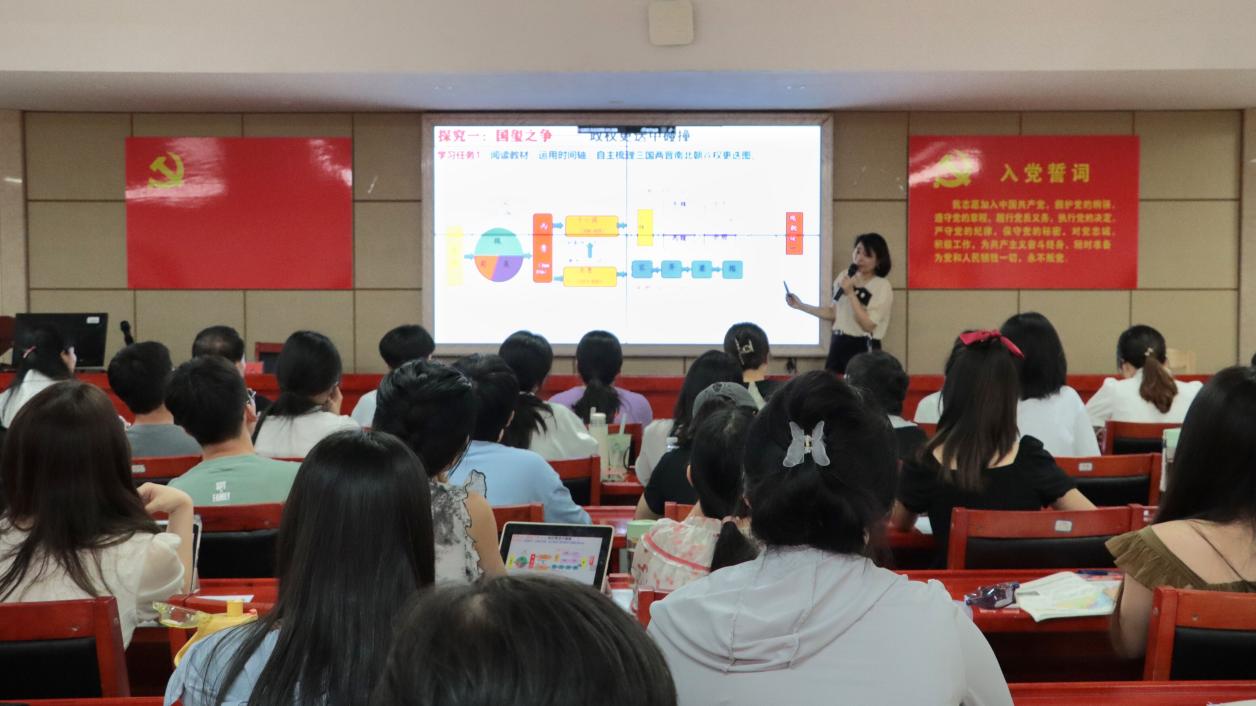 “我一直在思考,作為一名教師我應(yīng)該教什么,如何教”,沈斌老師以問題展開講座,“在有限的45分鐘內(nèi),如何平衡學生的興趣與教材知識點的關(guān)系是一直以來的困惑。”對此,沈老師指出,首先要確定講什么,講課內(nèi)容可以打亂教材,但要始終圍繞重點。其次,講課時應(yīng)注重讓學生自主學習、梳理時間線,不能只顧自己講,要用情境教學、問題教學等方式讓學生真正參與到課堂中去。在談到自己作為教師的心得時,她表示:“歷史老師使命感還是很重的,在課堂中應(yīng)該更多去給學生弘揚正能量。”