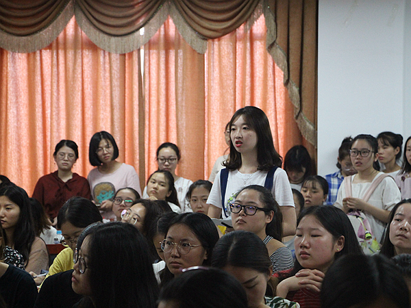 在提問環(huán)節(jié)中,韓少功教授對“作為老師如何勸導(dǎo)學(xué)生利用碎片化時間閱讀經(jīng)典”,“對傳統(tǒng)文化的看法”,“如何讓更多讀者看到自己的作品”等問題一一耐心解答。“問題不在于如何讀書,而在于為什么讀書,為了考試讀書就糟糕啦”,“國學(xué)是資源,但不能照搬,民國也有國學(xué)熱,如果那時候的社會問題不能用國學(xué)解決,那現(xiàn)在的問題憑什么能用國學(xué)解決呢”,“如何讓更多讀者看自己的書嗎?我也好想知道”。韓教授的妙語連珠引起了場下陣陣歡笑與掌聲。