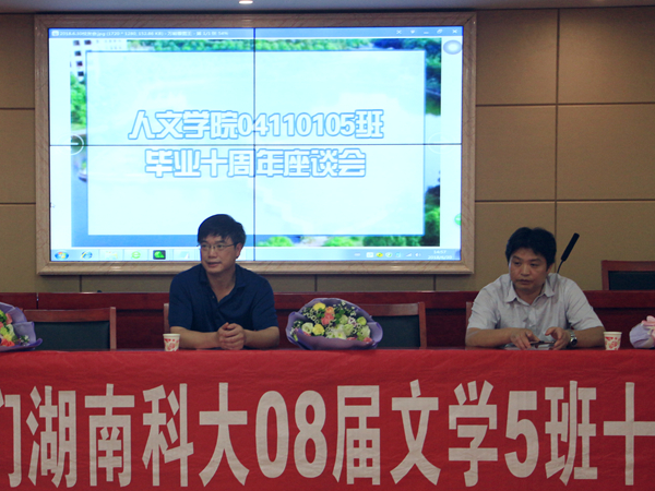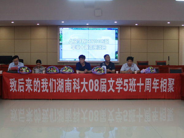 “十年之前,我不認(rèn)識(shí)你,你不屬于我,我們還是一樣……”,伴隨著《十年》的背景音樂(lè),04級(jí)文學(xué)五班畢業(yè)十周年座談會(huì)正式開(kāi)始。本次座談會(huì)于6月30日在立言樓B4-1舉辦,我院院長(zhǎng)劉奇玉及部分老師參加了本次座談會(huì)。